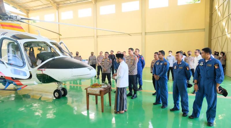 Banda Aceh - Kapolda Aceh Irjen Pol. Drs. Ahmad Haydar, S. H., M. M, bersama Irwasda Polda Aceh Kombes Pol. Kalingga Rendra Raharja, S. E., S. H, dan PJU Polda Aceh langsung menaiki Helikopter baru yang dimiliki Polda Aceh seusai dipesijuek, Kamis, tanggal 15 September 2022.