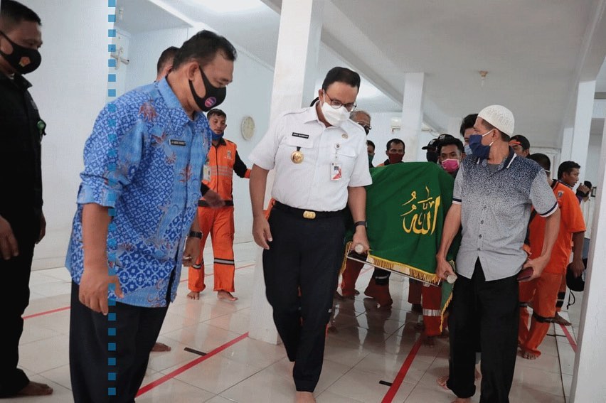 Taka yang disemayamkan di Kabupaten Indramayu, Jawa Barat, dilepas oleh Gubernur DKI Jakarta Anies Rasyid Baswedan. Sebelum itu, Anies memang datang takziah dan mengikuti Sholat Jenazah di Masjid Jami’ Al-Ihsan Kelapa Gading. Dengan mengenakan pakaian dinas dan memakai masker, Anies menjadi makmum.