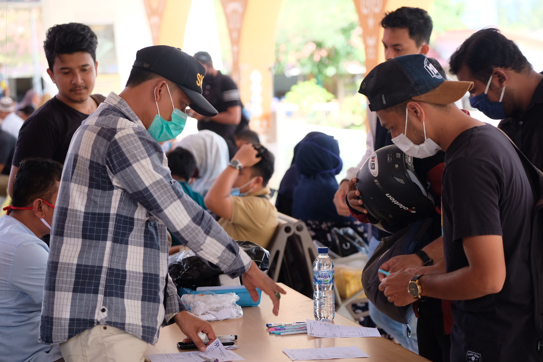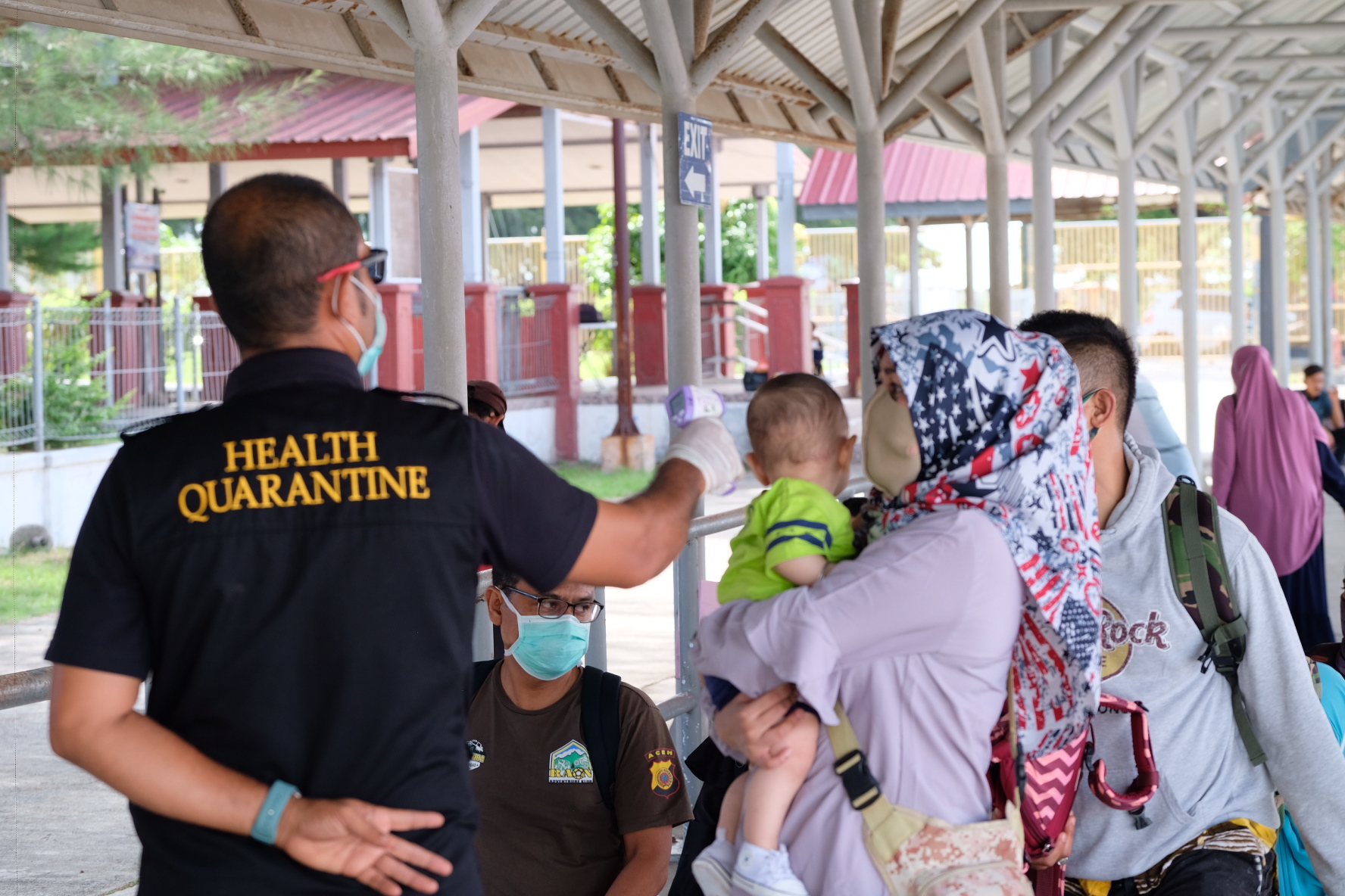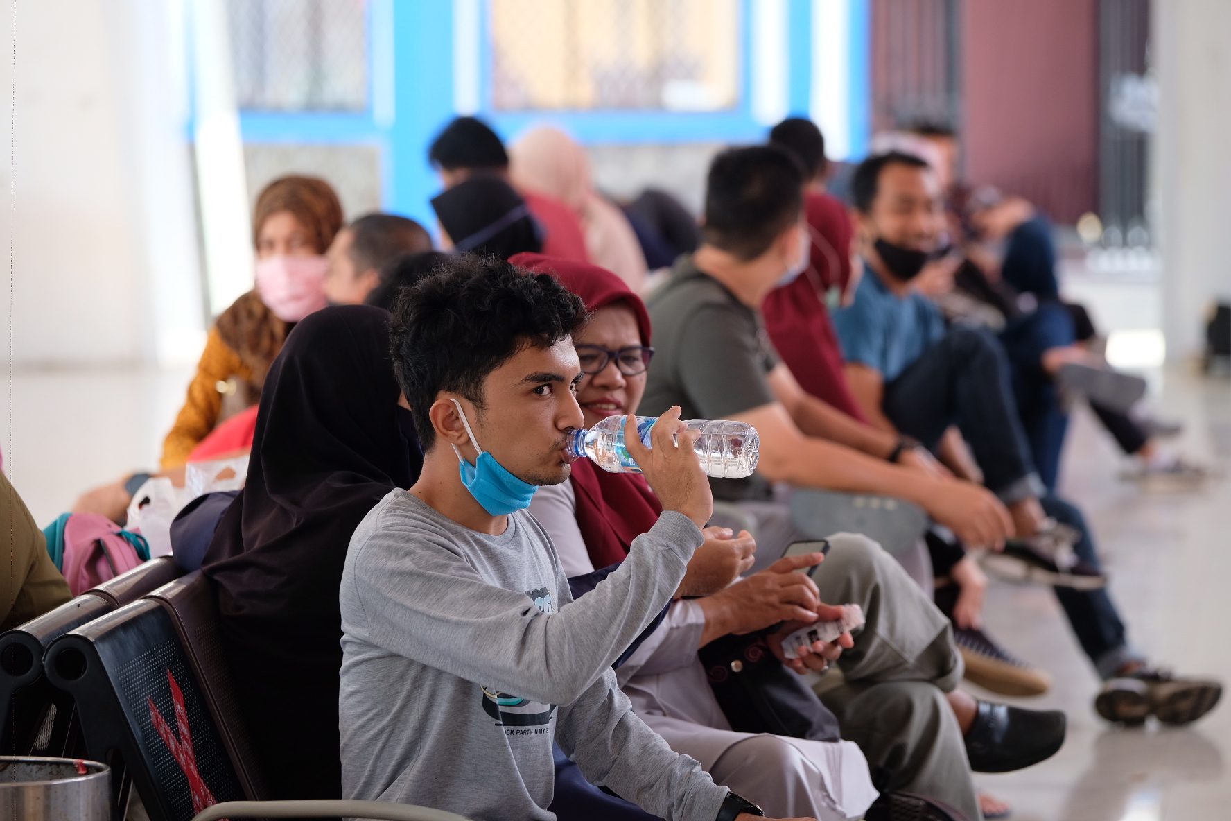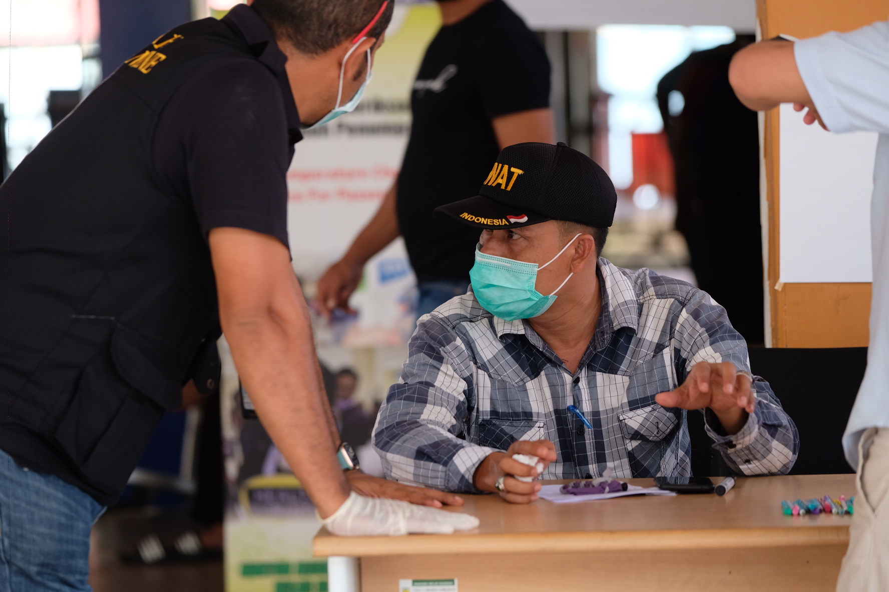 Banda Aceh - Suasana pelabuhan Ulee Lheue, Banda Aceh, Minggu (14/06/2020) . Terhitung hari ini, warga KTP Aceh boleh memasuki wilayah Sabang tanpa harus menunjukkan surat bebas Covid-19. Namun bagi warga luar Aceh harus menunjukkan surat bebas Covid-19 hasil Rapid Test.
