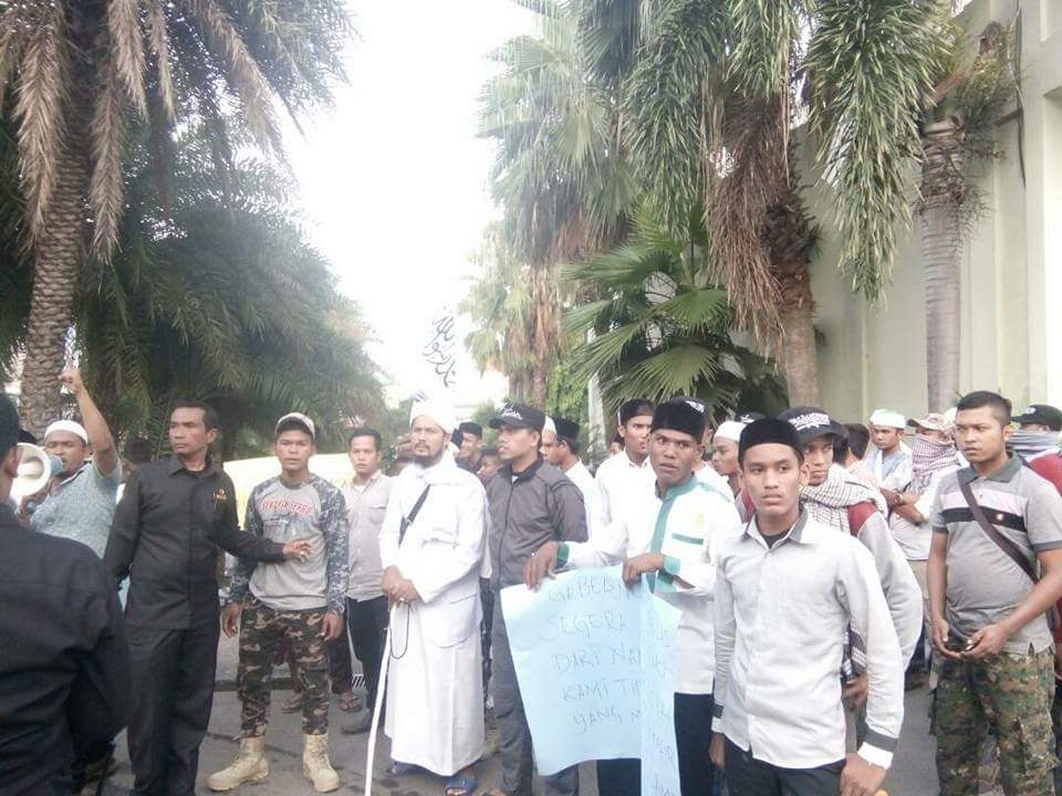 Banda Aceh - Puluhan aktivis Islam mendatangi hotel tempat menginap Gubernur Kalimantan Barat, Cornelis di Banda Aceh, Sabtu (6/5).