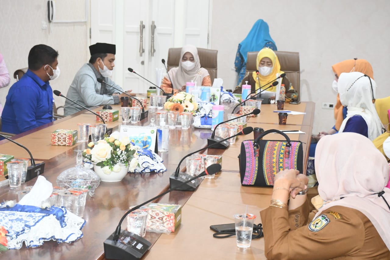 Banda Aceh – Ketua TP PKK Kota Banda Aceh Nurmiati menyambut audiensi Direktur PT Mahirah Muamalah Syariah (MMS) Mufied Alkamal dan jajarannya di Pendopo Wali Kota Banda Aceh, kawasan Blang Padang (Senin, 13 Desember 2021).