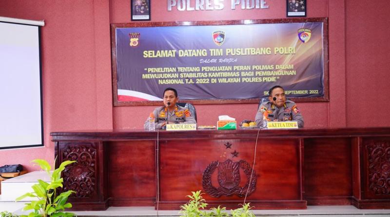 Kapolres Pidie AKBP Padli, SH, SIK, MH menyebutkan Kegiatan tersebut dalam rangka Penelitian tentang penguatan peran Polmas dalam mewujudkan stabilitas Kamtibmas Bagi Pembangunan Nasional Tahun Anggaran 2022 di wilayah hukum Polres Pidie