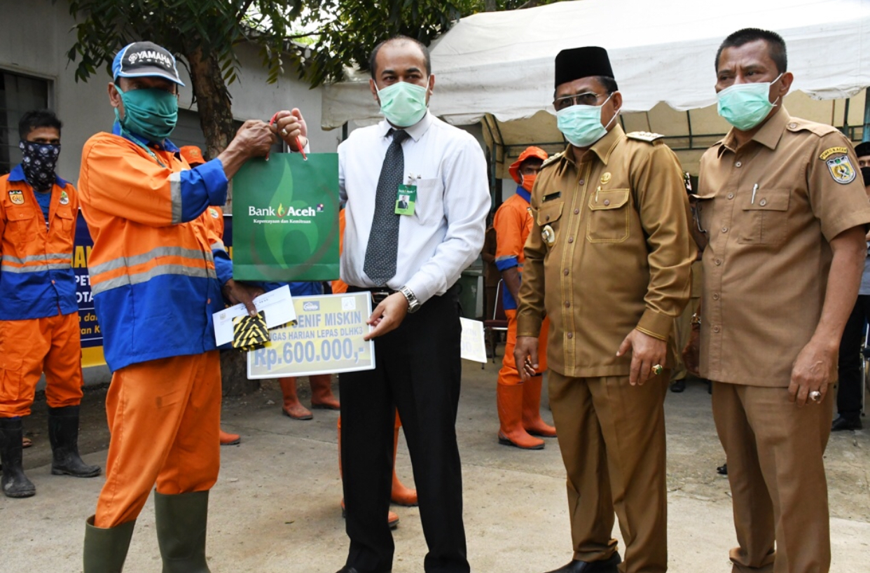 Pada kesempatan yang sama, Wali Kota bersama Kepala Bank Aceh Syariah KPO Banda Aceh, Fadhil Ilyas juga menyerahkan bantuan berupa paket ramadhan untuk petugas kebersihan.